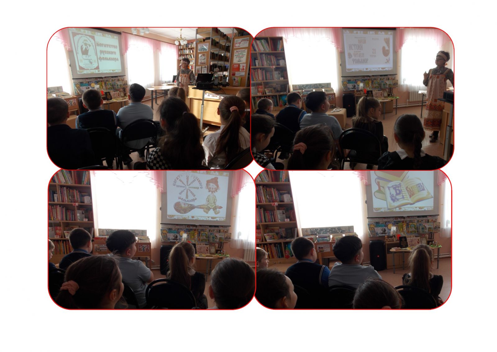 В рамках проведения Всероссийской акции «Наши истоки» (г. Ульяновск) сельский библиотекарь пригласила учеников 1-5 классов на библиомикс-завалинку «Богатство русского фольклора», где речь шла об устном народном творчестве: потешках, небылицах, частушках, считалках, сказках, поговорках, загадках. Также ребята приняли участие в «Литературных гонках», в которых вспоминали жанры фольклора, выполняли задания: «Дополни пословицу», «Бой скороговорок», «Народные игры», «Загадки – отгадки». Весело и непринужденно завершили библиомикс-завалинку дружным хороводом под русскую народную песню «Во поле береза стояла».