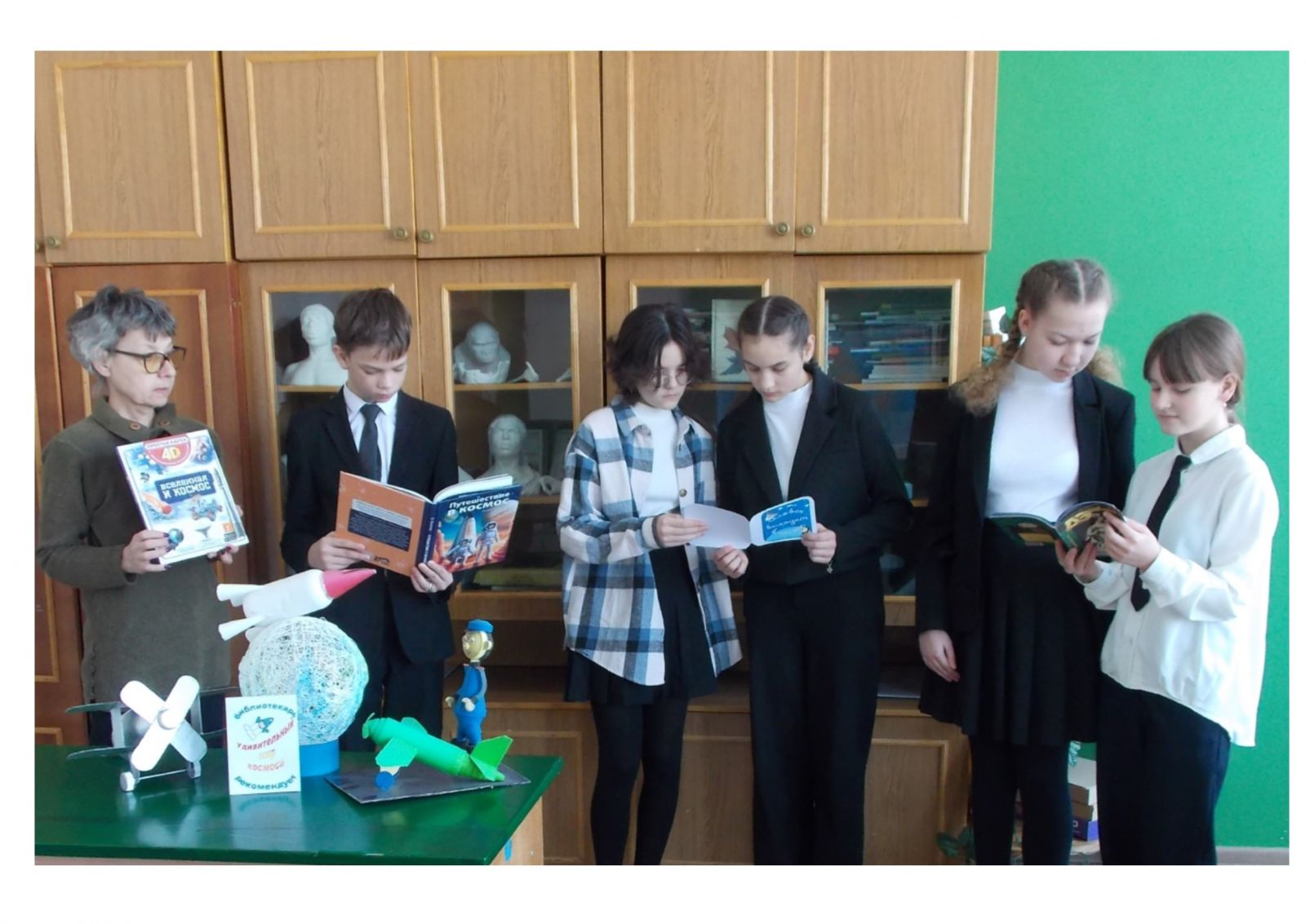 Учащиеся школы приняли участие в буклет-акции «Первый в открытом космосе», посвященной выдающемуся космонавту, дважды Герою Советского Союза, летчику-космонавту СССР, писателю и художнику Алексею Архиповичу Леонову. Из буклета они узнали подробности о знаменитой стыковке «Союз-Аполлон», о выходе 60 лет назад Леонова в открытый космос и о том, как он справился с внештатной ситуацией. Кроме этого, в полиграфическом издании были опубликованы репродукции, выполненные самим космонавтом. На одной из страниц буклета для читателей были предложена викторина «Что ты знаешь о космосе», ответить на вопросы которой можно было лишь с помощью предложенных книг из библиотечного фонда.