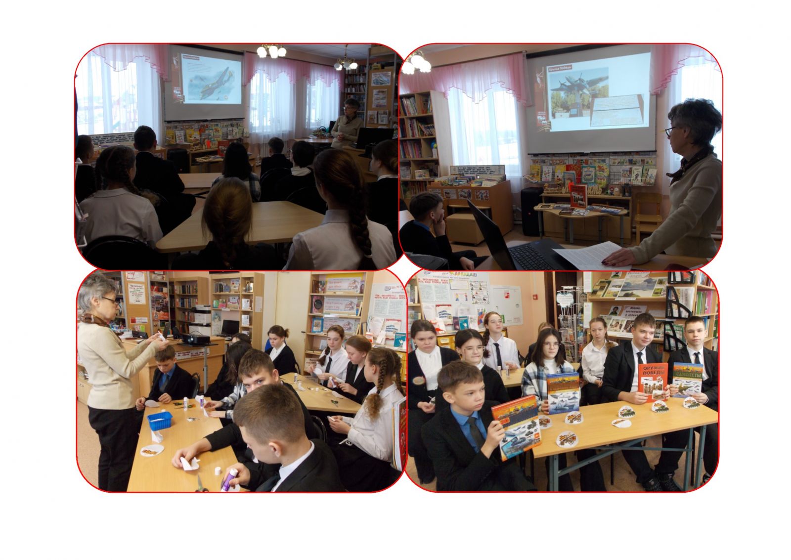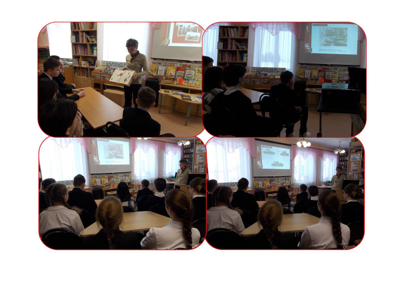 В рамках празднования Года защитника Отечества для учащихся 8-9 классов состоялась премьера книги Виктора Бакурского «Оружие Победы», в которой рассказывается о наиболее известных образцах отечественного вооружения и военной техники, сыгравших важную роль в Великой Отечественной войне и ставших символами Победы. Благодаря прекрасным иллюстрациям, ребята смогли ознакомиться с архивными документами и фотографиями, что позволило испытать чувство гордости за разработки российских конструкторов и инженеров, повлиявших на ход войны и всей мировой истории. В заключение ученики смастерили объемную композицию из бумаги: на фоне георгиевской ленты расположили орудия войны – танк Т-34 и пулемёт «Максим».