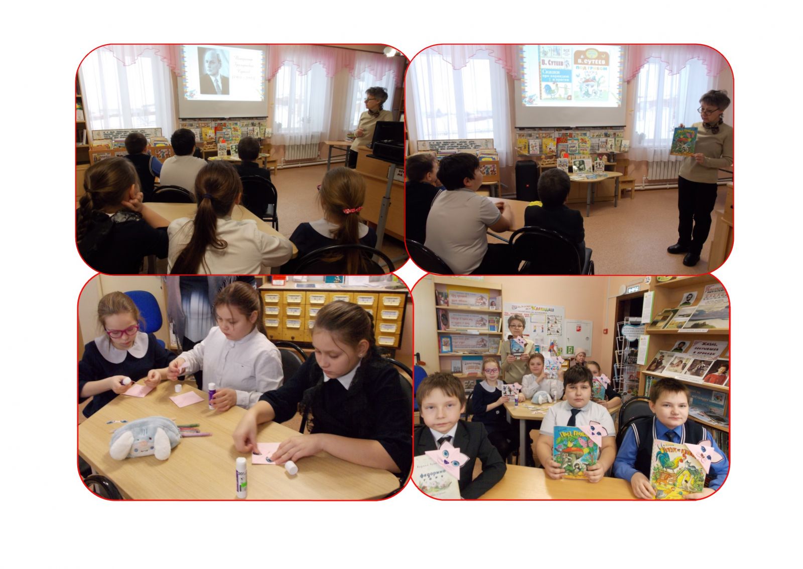 Сельский библиотекарь пригласила учеников 1-5 классов поиграть в литературное лото «Кто сказал МЯУ?» по страницам юбилейной одноименной сказки В. Г. Сутеева. Рассказ библиотекаря об основных этапах жизни и творчества писателя сопровождался яркими слайдами, на которых отразились красочные иллюстрации, передающие характеры сказочных персонажей. Затем ребята участвовали в викторине, посмотрели фрагмент сказки Сутеева «Кто сказал МЯУ?» и смастерили книжные закладки в форме кошки.