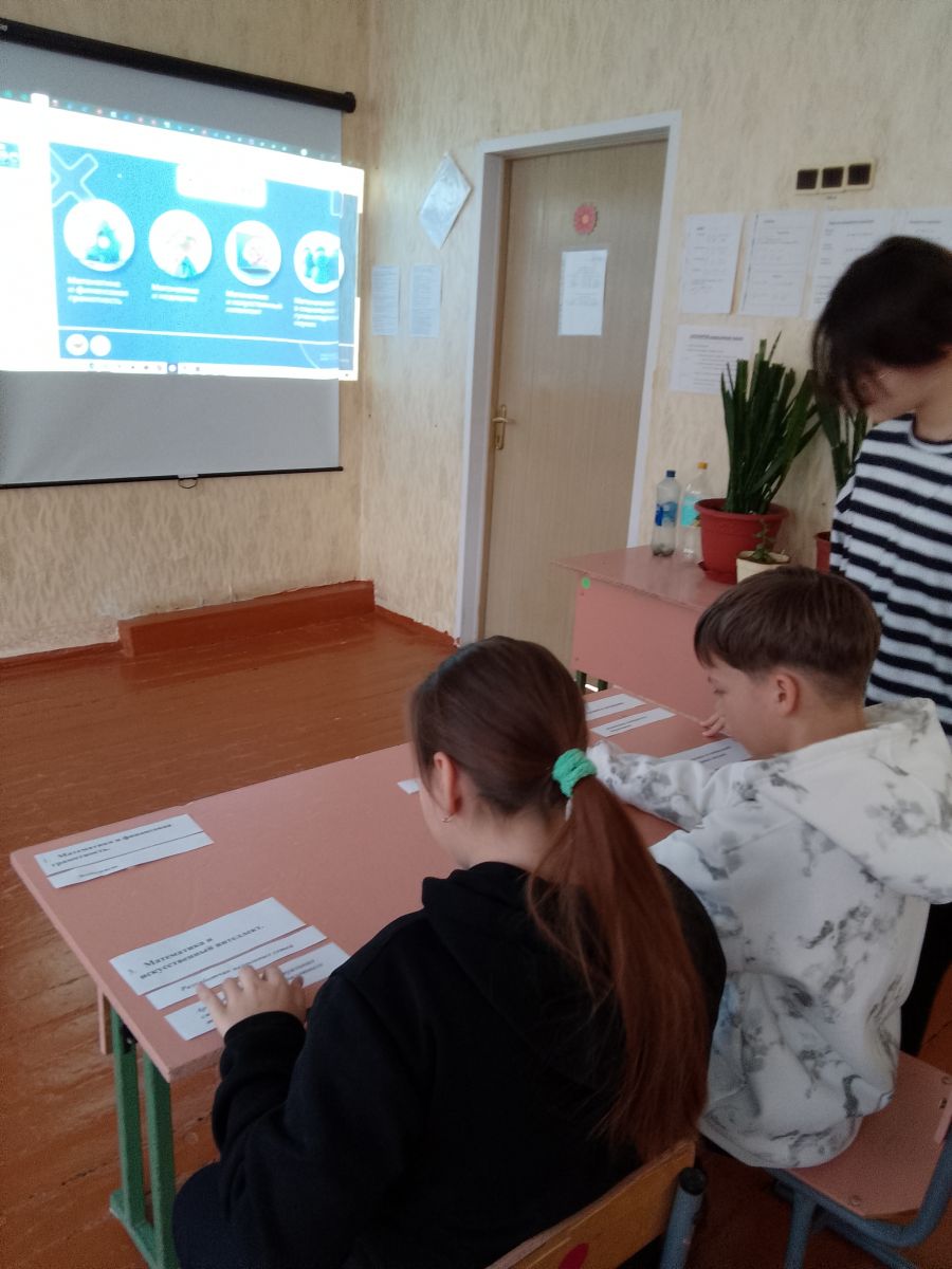 В ходе занятия ребята узнали о роли математики в современном обществе, решили практическую задачу о производительности труда при переходе от ручного труда к мануфактурному производству.