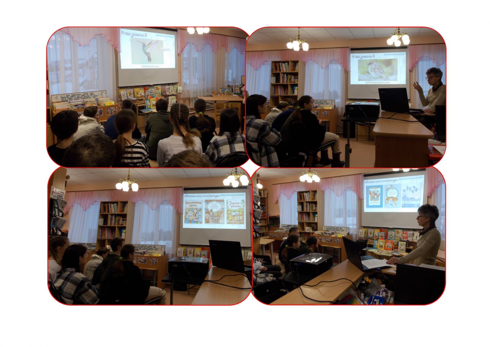 В сельской библиотеке для учащихся 7-9 классов была организована литературная викторина «Эти забавные пернатые». Участники отвечали на вопросы 5 раундов: «Топ-10 интересных фактов о птиц», «Птичьи афоризмы», «Птицы – герои сказок», «Птичья жизнь», «Птицы в литературе». Ребята показали отличные знания по зоологии и экологии. В заключение библиотекарь обратила внимание учащихся на книги о жизни пернатых и предложила принять участие в акции «Покормите птиц зимой», изготовив из подручных материалов кормушки.
