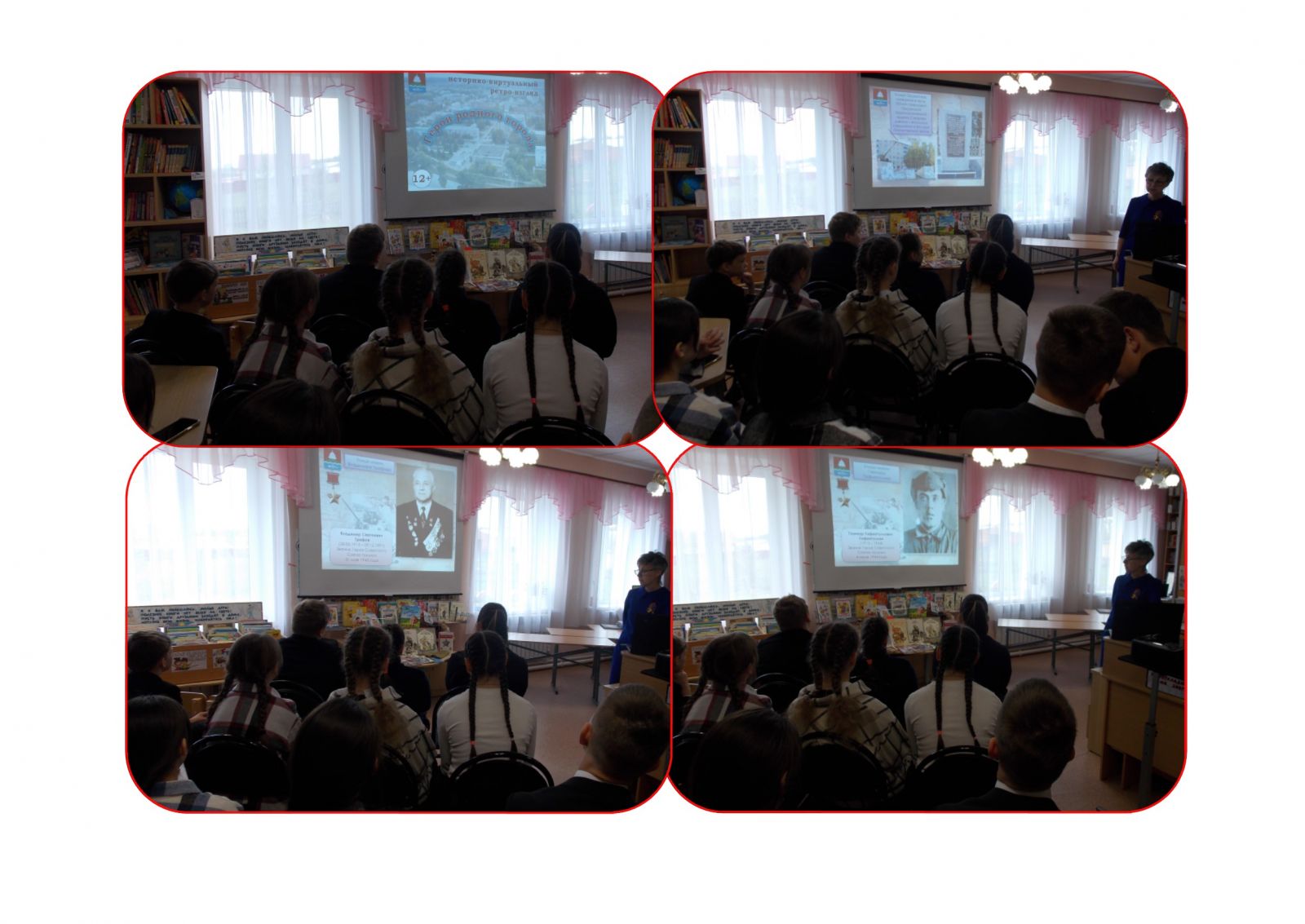 В канун Дня памяти и скорби в сельской библиотеке прошел историко-виртуальный ретро-взгляд «Герои родного города», из которого ученики школы смогли узнать о тяжелой, кровопролитной Великой Отечественной войне, о боевых подвигах бугульминцев, о людях, которые оставались и работали в тылу. Рассказ библиотекаря дополняли фотодокументы фронтовиков и тыловиков, взятых из книг краеведческого характера, которые раскрывают сложный военный период для Бугульмы и района. В заключение участники историко-виртуального ретро-взгляда минутой молчания почтили память воинов, погибших на фронтах войны.