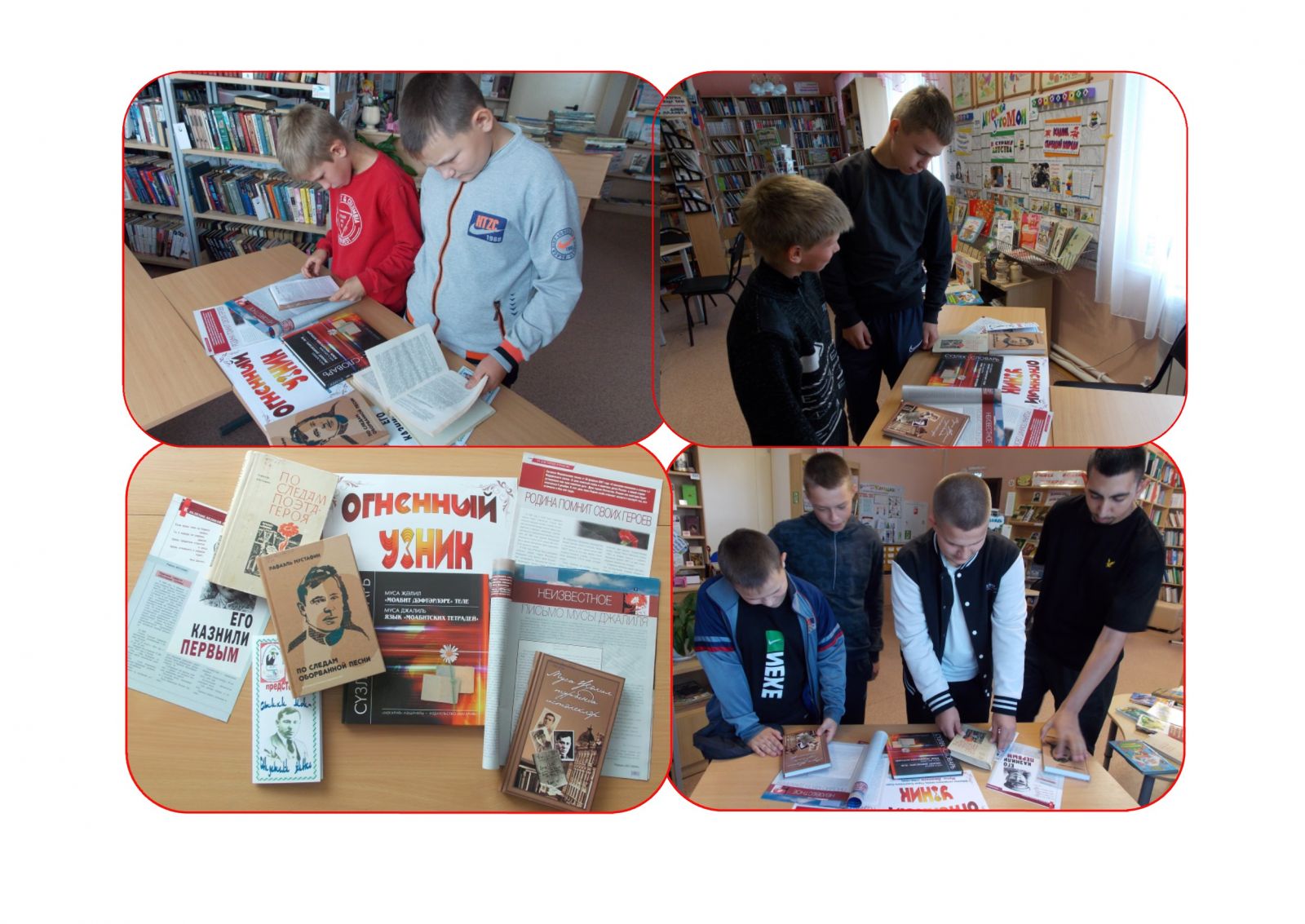 В сельской библиотеке состоялась буклет-акция «Кого-то из нас не досчитаются», посвященная Мусе Джалилю и его соратникам, которые в 1944 году были казнены в фашистской тюрьме Плётцензее (Берлин). Учащиеся школы ознакомились с историческими фактами того трагического момента, когда под Мясным Бором (Волховский фронт) Джалиль в бессознательном состоянии попал в плен и помещен в тюрьму Моабит, где за год пребывания татарский поэт написал знаменитую книгу стихов «Моабитские тетради». Эти бессмертные произведения – стихи на клочках бумаги – чудом дошедшие до нас, являются главным источником связи между прошлым и настоящим, между войной и миром, между живыми и мертвыми.