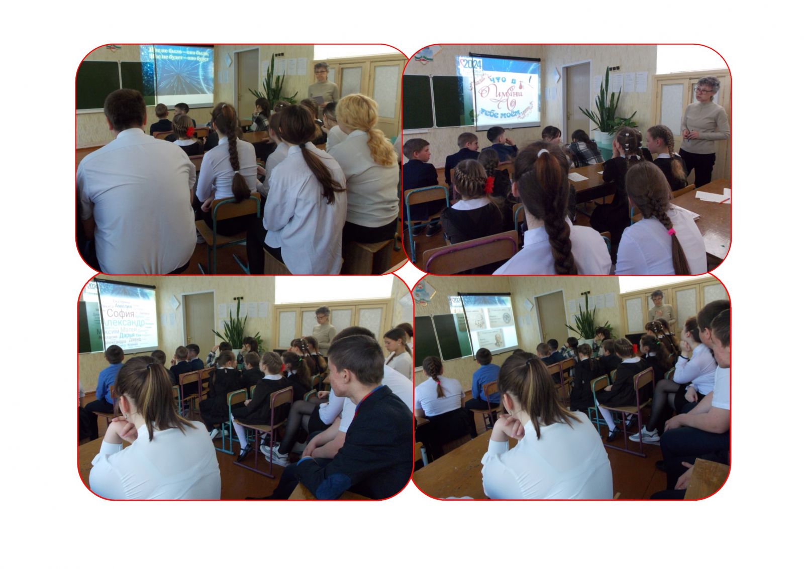 В связи с днем единых действий в память о геноциде советского народа нацистами и их пособниками в годы Великой Отечественной войны с учащимися школы был проведён урок памяти, на котором были рассказаны правдивые истории о преступлениях, совершенные немецкими захватчиками на территории СССР в отношении мирных граждан, о действии Красной Армии в достижении Победы, о единении советского народа ради спасения государства и его граждан от полного уничтожения. Следует бережно хранить память о тех страшных событиях и не дать трагедии вновь повториться на нашей земле.