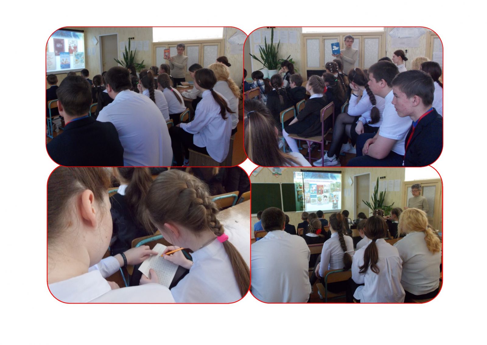 Учащиеся 6-9 классов были приглашены на литературный час-открытие «Сражаюсь, верую, люблю», где речь шла о писателе, драматурге, сценаристе, Герое Социалистического труда, мастере живого русского литературного языка Викторе Петровиче Астафьеве. Он рано остался без родителей, беспризорничал, воевал в годы Великой Отечественной войны, был ранен, встретил на войне свою любовь. Кроме этого, библиотекарь на примере произведений автора раскрыла богатый мир чувств, образов, характеров, созданных в повестях и рассказах автора, среди которых «Васюткино озеро», «Перевал», «Последний поклон», «Кража». Рассказ сопровождалось красочными иллюстрациями и фотографиями.