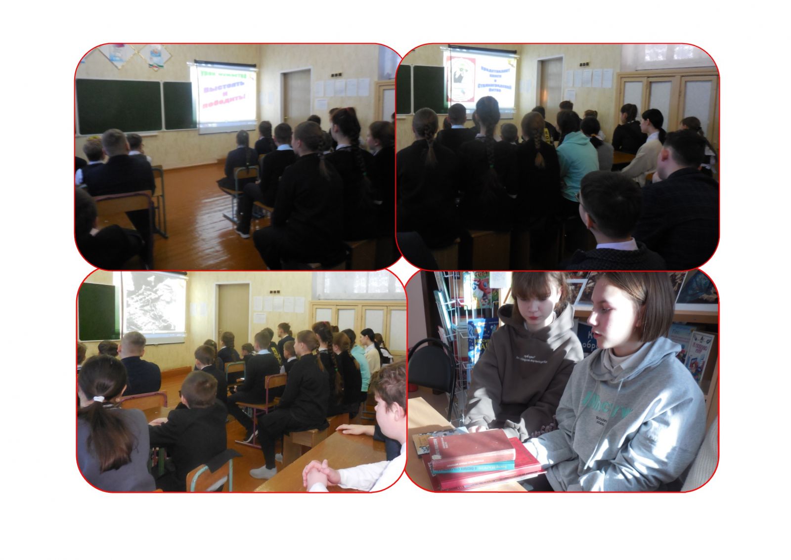 В школе прошел урок памяти «Горячий снег Сталинграда», посвященный разгрому советскими войсками немецко-фашистских войск в Сталинградской битве. Педагоги и учащиеся узнали о значении сражения для хода всей Великой Отечественной войны (1941-1945 гг), что освобождение города и его окрестностей продолжалось она 200 дней и ночей, так же о знаменитом Доме Павлова, названному по фамилии сержанта, оборонявшего его, о главной высоте – Мамаевом кургане – на военных картах он обозначался как высота 102 и имел важное стратегическое значение: с его вершины хорошо просматривалась и простреливалась прилегающая территория и переправа через Волгу. В заключение урока памяти сельский библиотекарь предложила для прочтения произведения В.Некрасова, М.Аексеева, Ю.Панченко, К.Симонова, Ю.Бондарева, В.Пикуля.