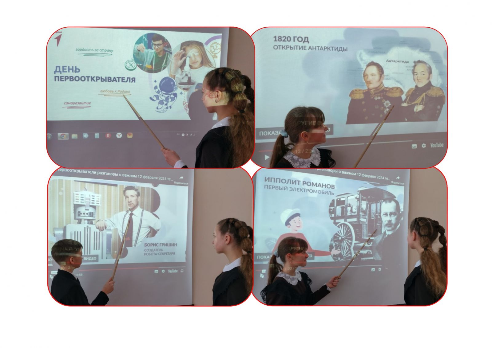 В школе проведен очередной урок «Разговоры о важном», на котором было дано представление о первооткрывателях, чьи открытия вошли в мировое наследие. На примере известных личностей и их изобретений, обучающимся показали, что сделать свои первые открытия можно уже в юном возрасте; а путешествуя по России – это отличный способ познания мира. Главная мысль урока: первооткрыватели – это, в первую очередь, профессионалы, которые смогли преодолеть границы стандартной деятельности и посвятили свою жизнь служению людям, науке, своей стране. Нужно сохранить память о российских первооткрывателях, учиться у них целеустремлённости, верности своему делу, мужеству идти вперёд.
