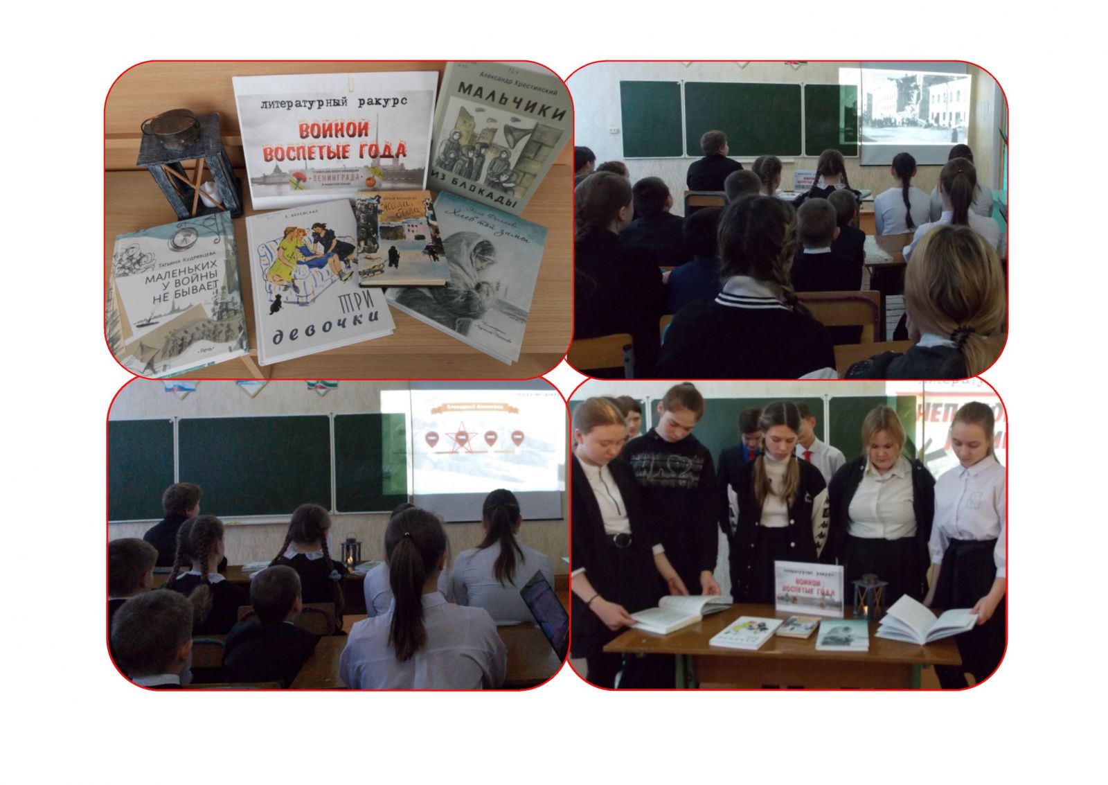 В рамках реализации программы «Пушкинская карта» ученики 8-9 классов участвовали в литературно-историческом квесте «Войной воспетые года», (организатор сельский библиотекарь). Речь шла о героизме и стойкости жителей Ленинграда, о строительстве спасительной «дороги жизни» через Ладожское озеро, о том, как город был превращен в крепость, как учились в бомбоубежищах, как питались жители и работали на заводах их ровесники. В заключение участники квеста получили на память календарики, на которых изображён коллаж, на котором символы, связанные с блокадой Ленинграда: метроном, 125 граммов хлеба, газетные полосы на окнах…