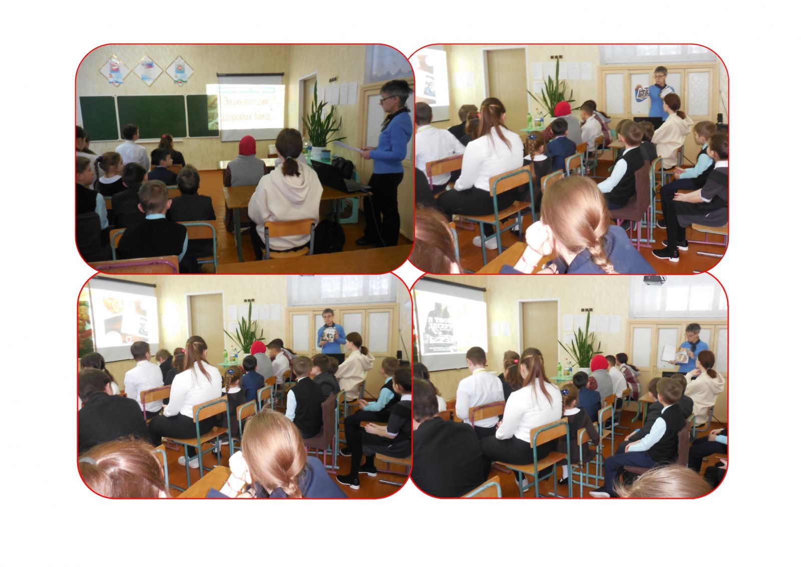 Для учащихся и педагогов школы было организовано литературное обозрение «Энциклопедия здоровых блюд». Сельский библиотекарь предложила прочесть книги, в которых можно найти ответы на актуальные вопросы о правильном питании и полезных продуктах. Например, сколько сахара можно съедать за день? Может ли жир быть полезным? Стоит ли есть клубнику зимой? Как определить качество продуктов и их пользу? В заключение участники литературного обозрения ответили на вопросы викторины, связанные с правильным хранением продуктов, и получили на память красочные флаеры с рецептами «Полезных блюд».