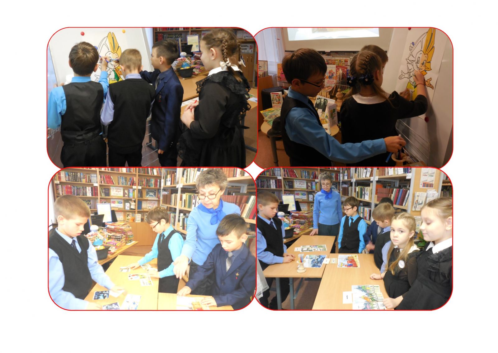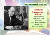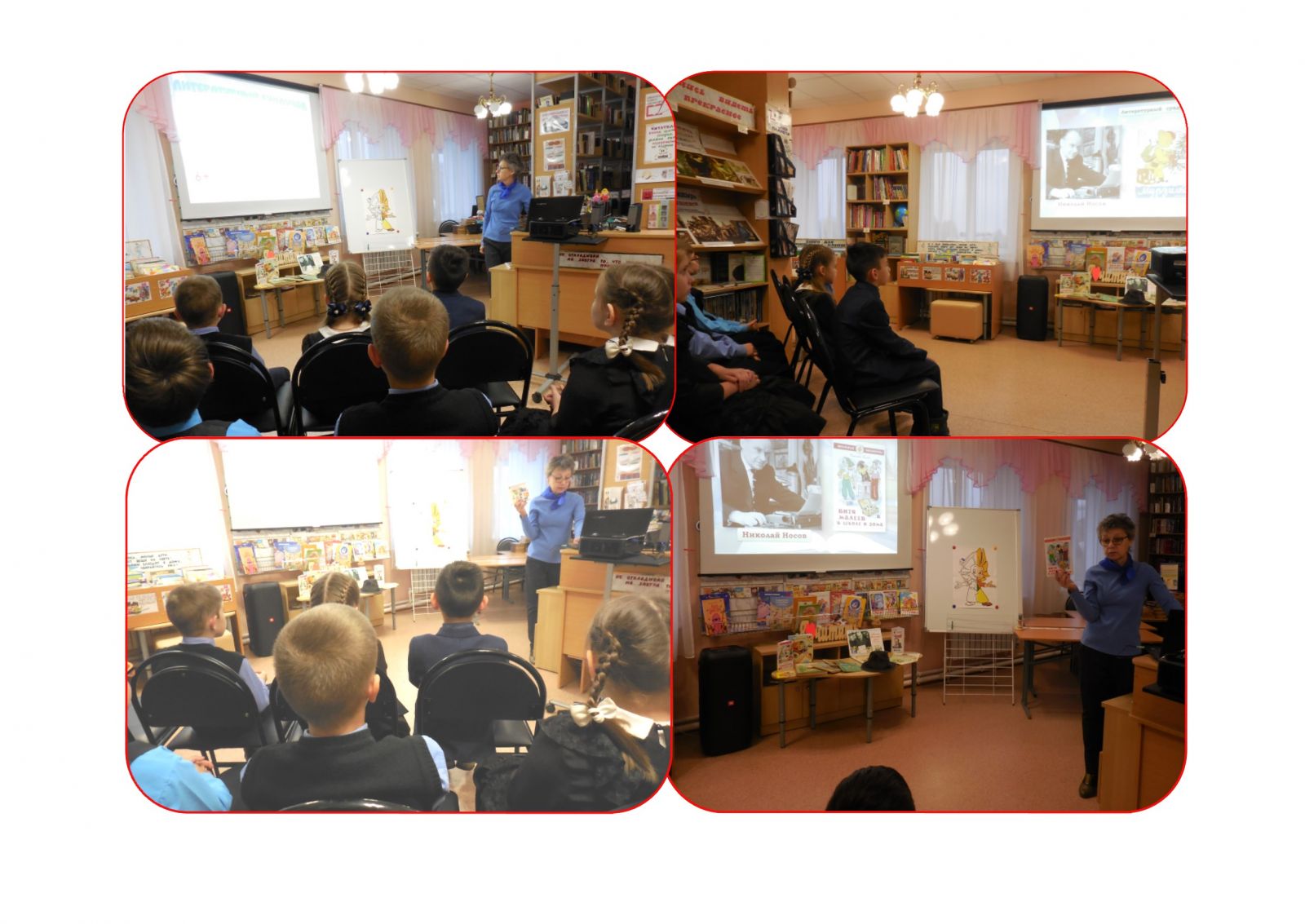 В сельской библиотеке для учащихся 1-4 классов был открыт литературный сундучок «Ребята с нашего двора». Ребята не только ознакомились с фактами из биографии писателя Николая Носова, но и прекрасно справились с предложенными заданиями: угадывали жителей солнечного города, соединяли имена и профессию коротышек; раскрашивали портрет Незнайки в конкурсе «Тюбиков»; отвечали на вопросы викторины «Мишкина каша»; подбирали рифмы к предложенным словам; проявляли меткость в попадании картошкой в шляпу. Выполнять многие задания юным читателям помогла красочная книжная выставка. Во время закрытия литературного сундучка ученики с большим удовольствием посмотрели фрагмент мультфильма «Бобик в гостях у Барбоса» по произведению Н. Носова.