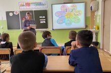 Посвящение первоклассницы в "Орлята России" состоялось в школе 10 ноября 2023 года. На торжественную церимонию была приглашена сельский библиотекарь Ишкова И.В. -заслуженный работник культуры, она выступила со словами напутствия отмечая, что это мероприятие очень важно для ребят, поскольку открывает двери в страну Орлят, в которой их ждет много нового, познавательного, интересного и полезного.