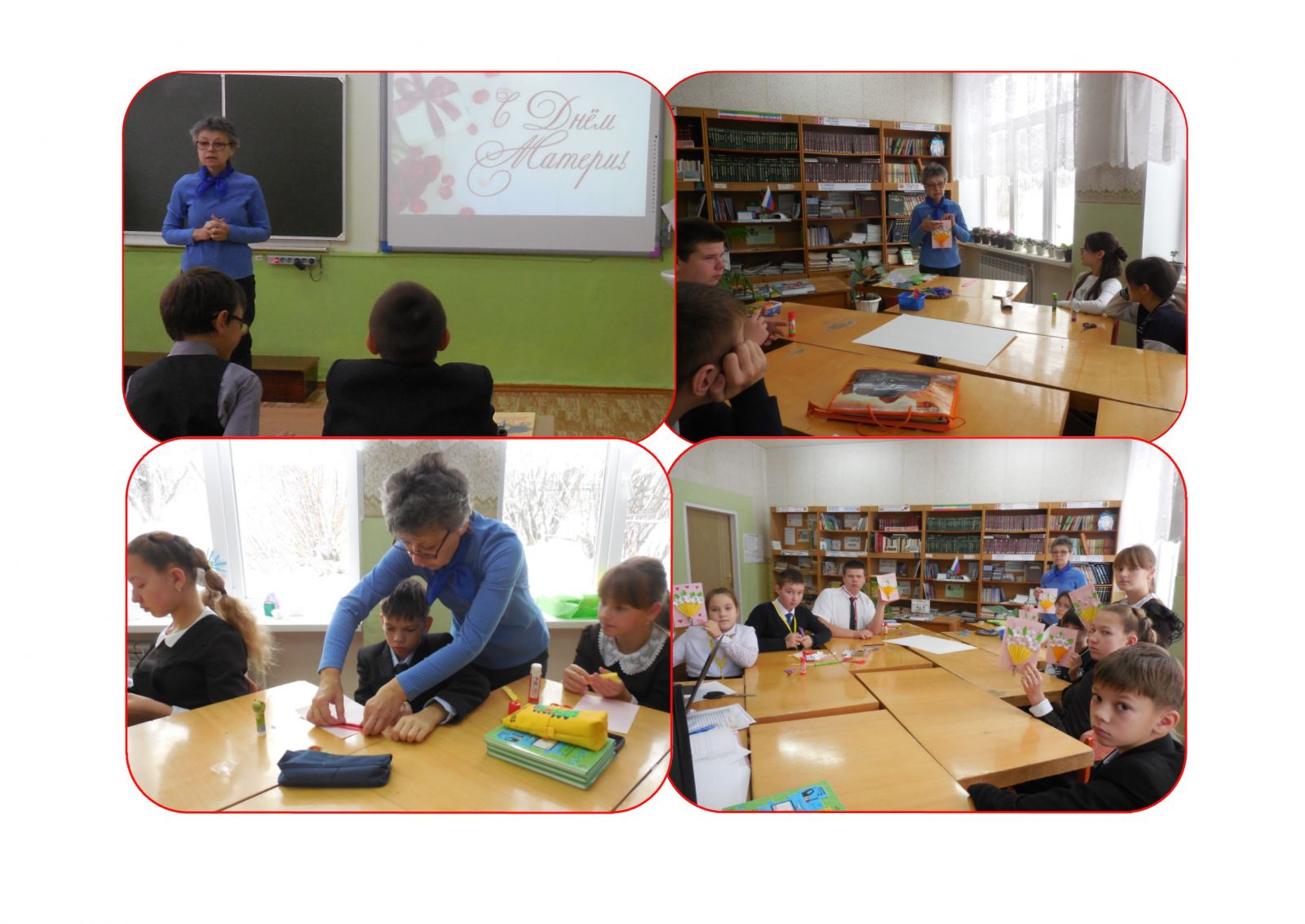 Учащиеся школы под руководством сельского библиотекаря участвовали в мастер-классе по изготовлению поздравительной открытки для своих мам. Символом Дня матери является незабудка, которая подразумевает память, постоянство, преданность, нежность и бескорыстную любовь. Именно поэтому мамам в их праздник ребята со словами любви и благодарности подарят открытку с букетом этих цветов.