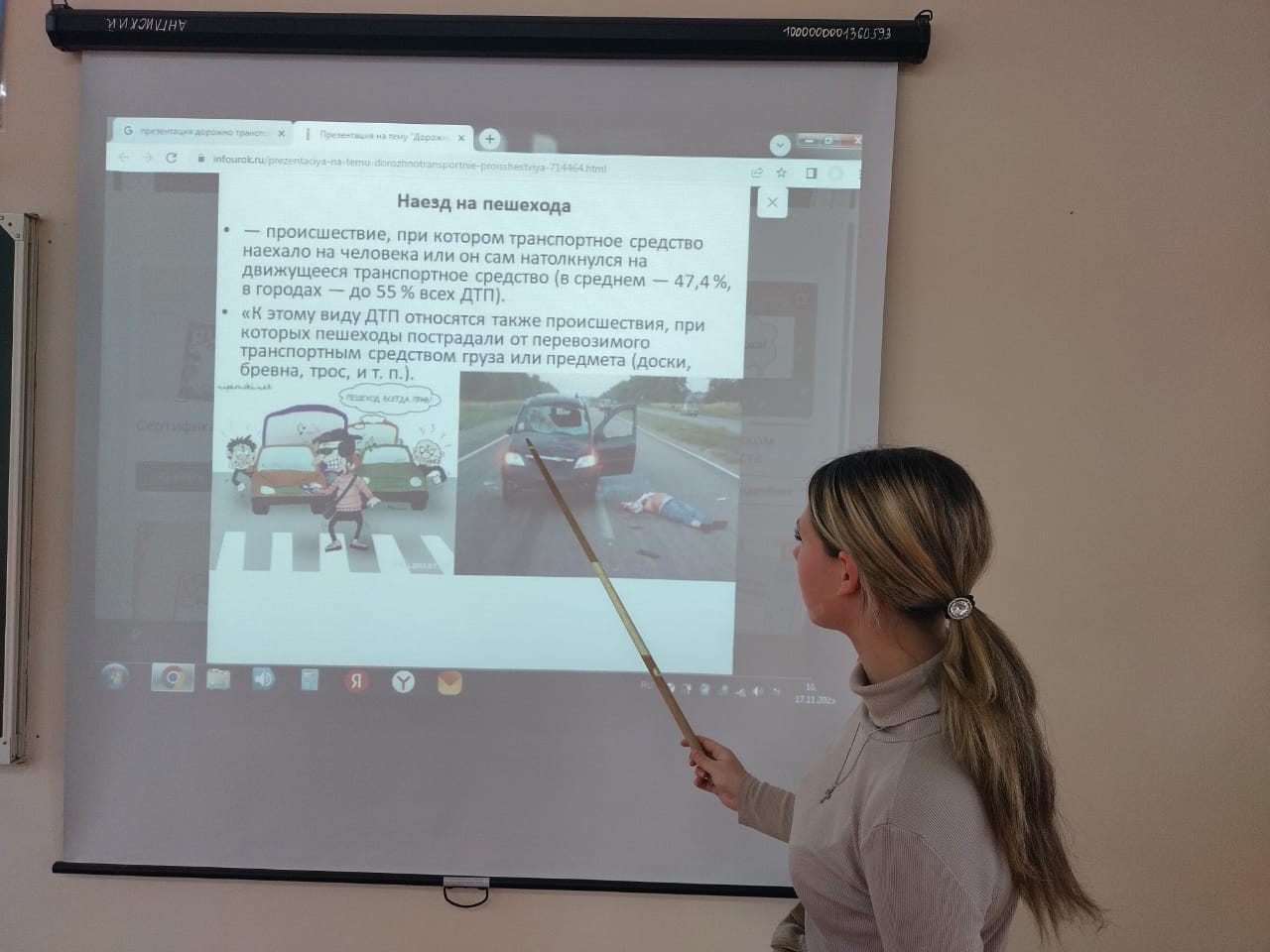 17 ноября 2023 года, в целях воспитания ответственности за свою жизнь и жизнь других участников дорожного движения и привлечения внимания учащихся к общероссийской проблеме безопасности дорожного движения, состоялся открытый урок, посвященный «Всемирному дню памяти жертв ДТП».
