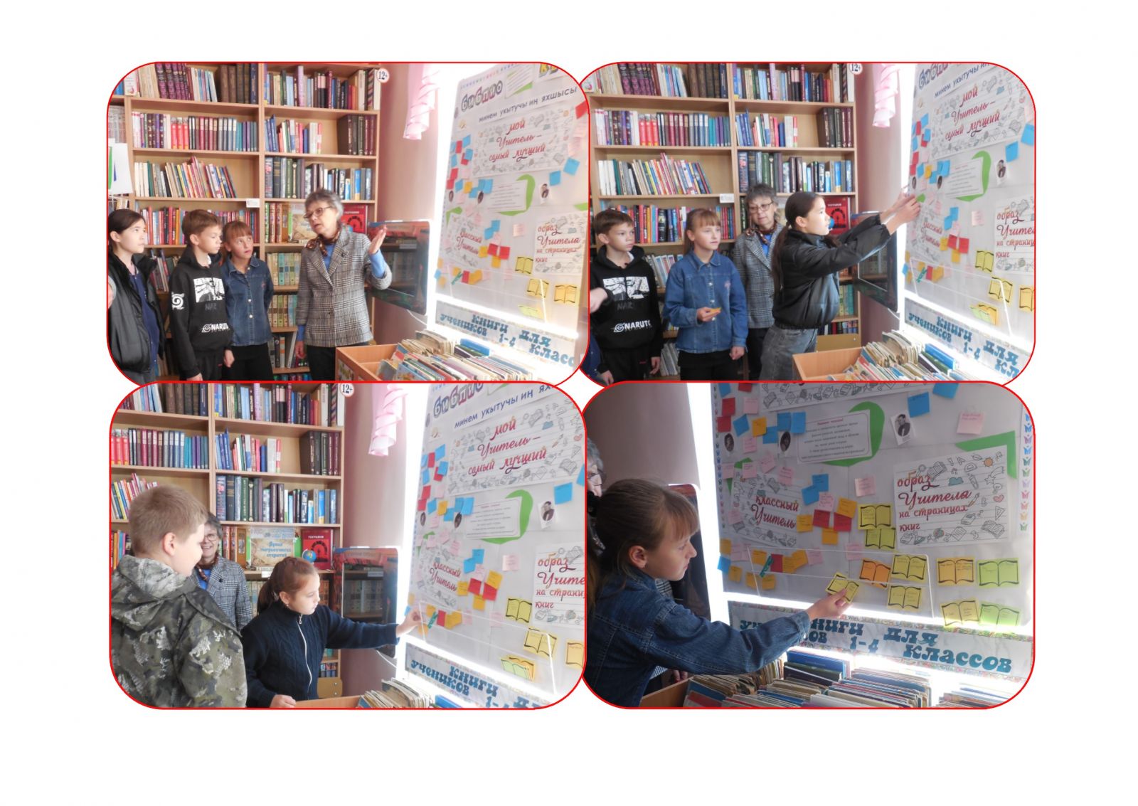 В сельской библиотеке в рамках празднования Года педагога и наставника для учащихся щколы был организован библиоквилт «Мой учитель самый лучший», который состоял из трех цветных частей: «Мой учитель – самый лучший», «Классный учитель», «Образ учителя на страницах книг». Ребятам было предложено внести к каждому блоку свой цветной «лоскуток» (стикер), написав на нём имя и фамилию своего наставника, учителя, названия книг о школе, учениках, педагогах. В результате получилось яркое полотно, отражающее образы учителя в произведениях писателей, а также слова любови и уважения к тем, от кого во многом зависят результаты обучения и воспитания, развитие в человеке доверия и нравственных ценностей.