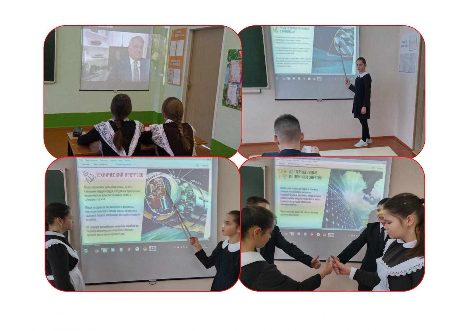 Очередной классный час «Разговор о важном» был посвящен Дню российской науки. Учащие ознакомились с историческими фактами: открытием в Санкт-Петербурге первой в России Академии наук, с изобретениями И. П. Кулибина; далее выполняли интерактивныезадания. Важным моментом классного часа стало обсуждение личного опыта ребят, связанного с их интересами ипредпочтениями в области различных наук. В заключение пришли к выводу: без науки не может развиваться наше общество, учёные создаютпроекты зданий, конструируют машины, разрабатываютразличные материалы, изобретают новые лекарства от болезней, пишутучебники и книги.