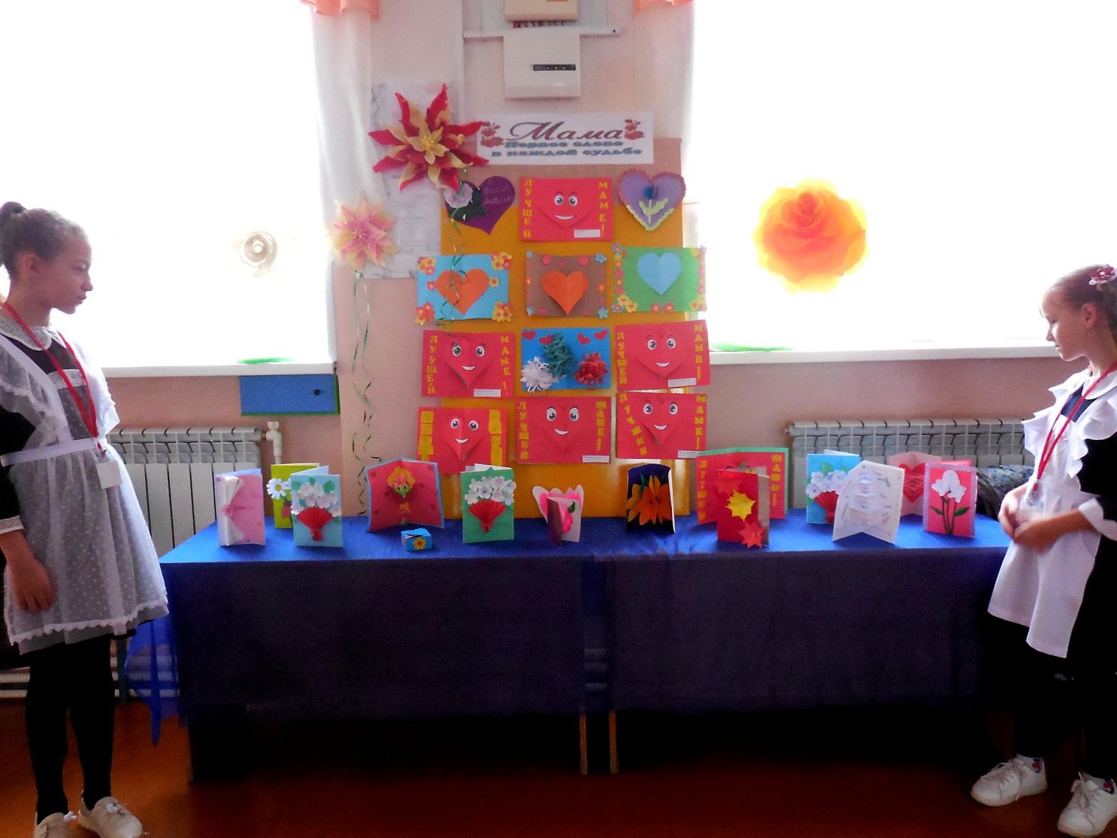 В канун Международного дня матери ученический и педагогический коллективы школы приняли участие в оформлении выставки поздравительных открыток. Из простых материалов – картона и цветной бумаги – они создали эксклюзивные красочные открытки, наполненные любовью, душевностью и нежностью к своим дорогим мамам.
