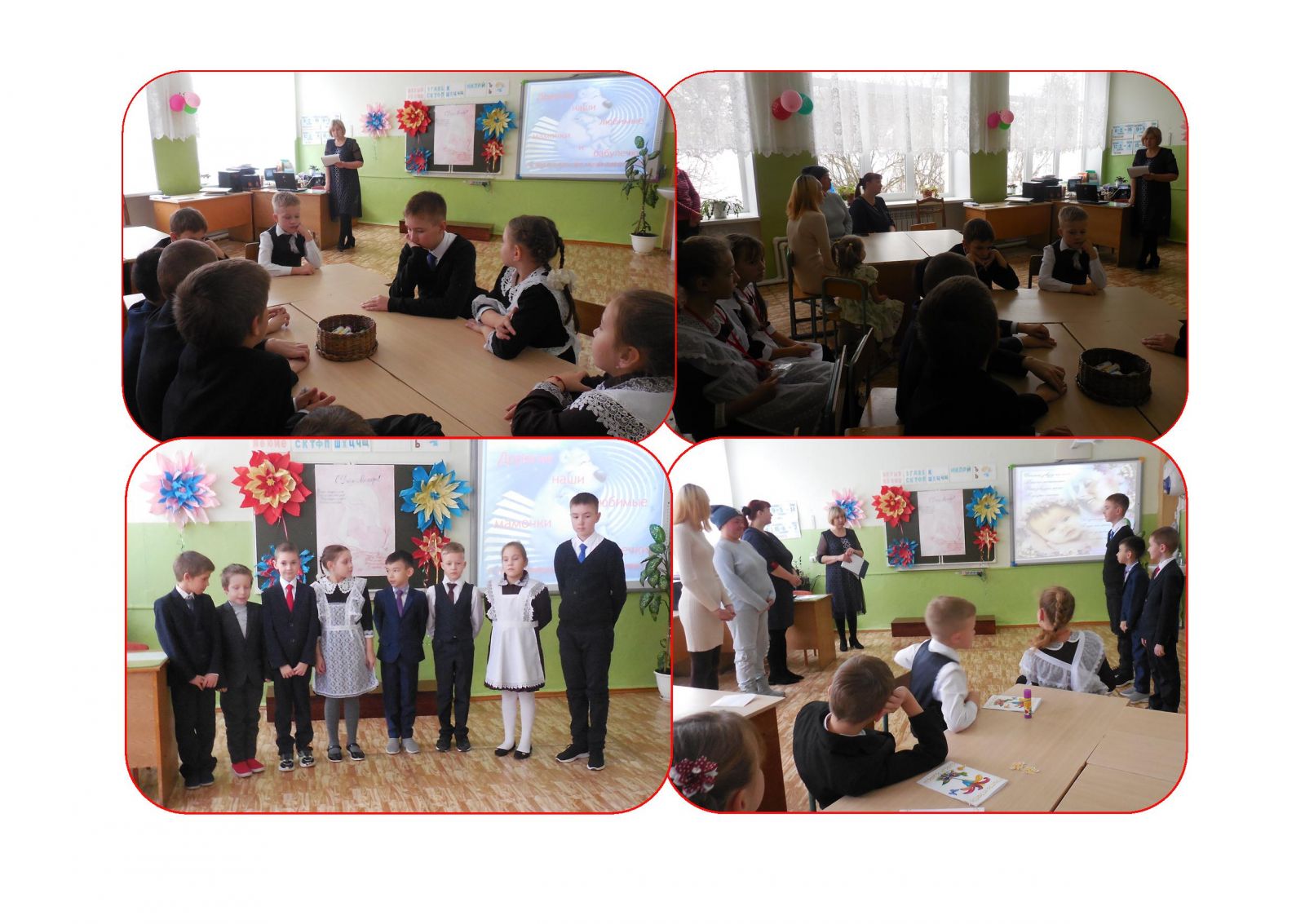 Ученики 1-4 классов пригласили на конкурсную программу своих мам для того, чтобы не только посостязаться с ними в конкурсах, но и выразить слова признательности за любовь, ласку, доброту, нежность. Ребята исполнили песни и стихи, которые пронизаны чувством радости, уважения и благодарности ко всем мамам на свете за безмятежное детствоих детей.