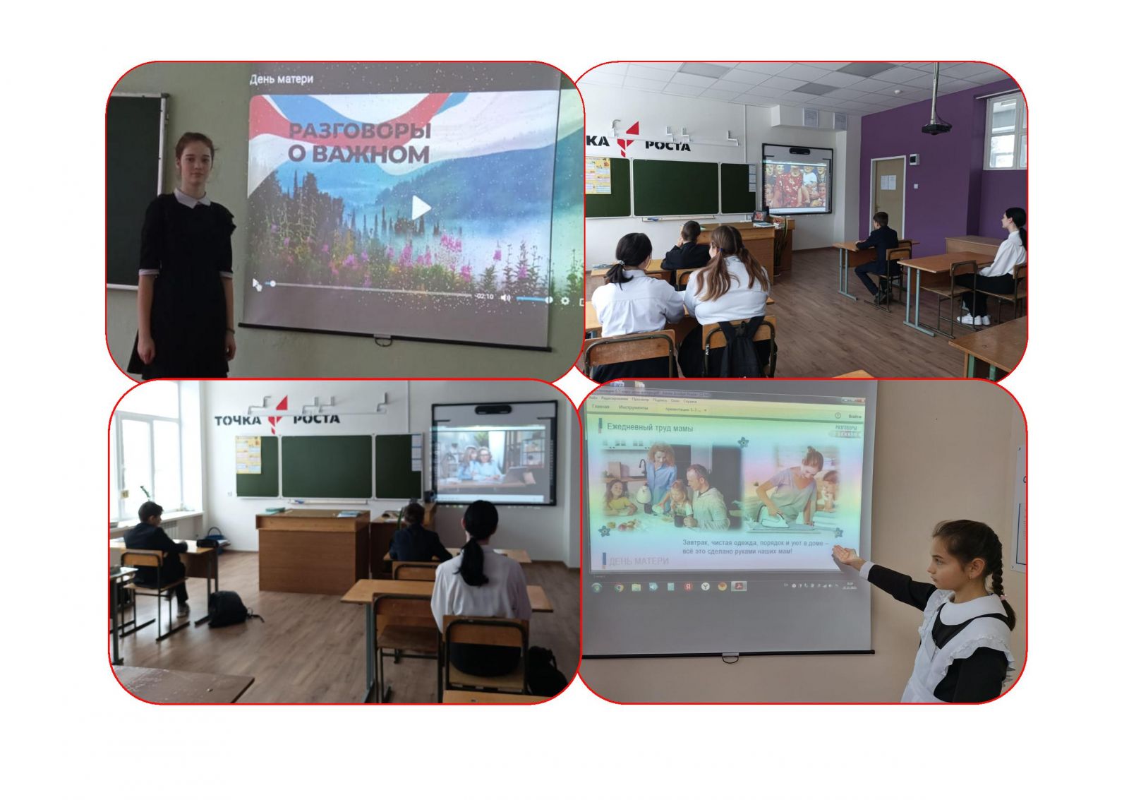 Классный час «Разговор о важном» прошел в форме слайд-презентации с целью воспитания у учащихся любви, уважения, благодарности, заботливого отношения к самому дорогому человеку на свете, а также формирования уважения к семейным ценностям и традициям.