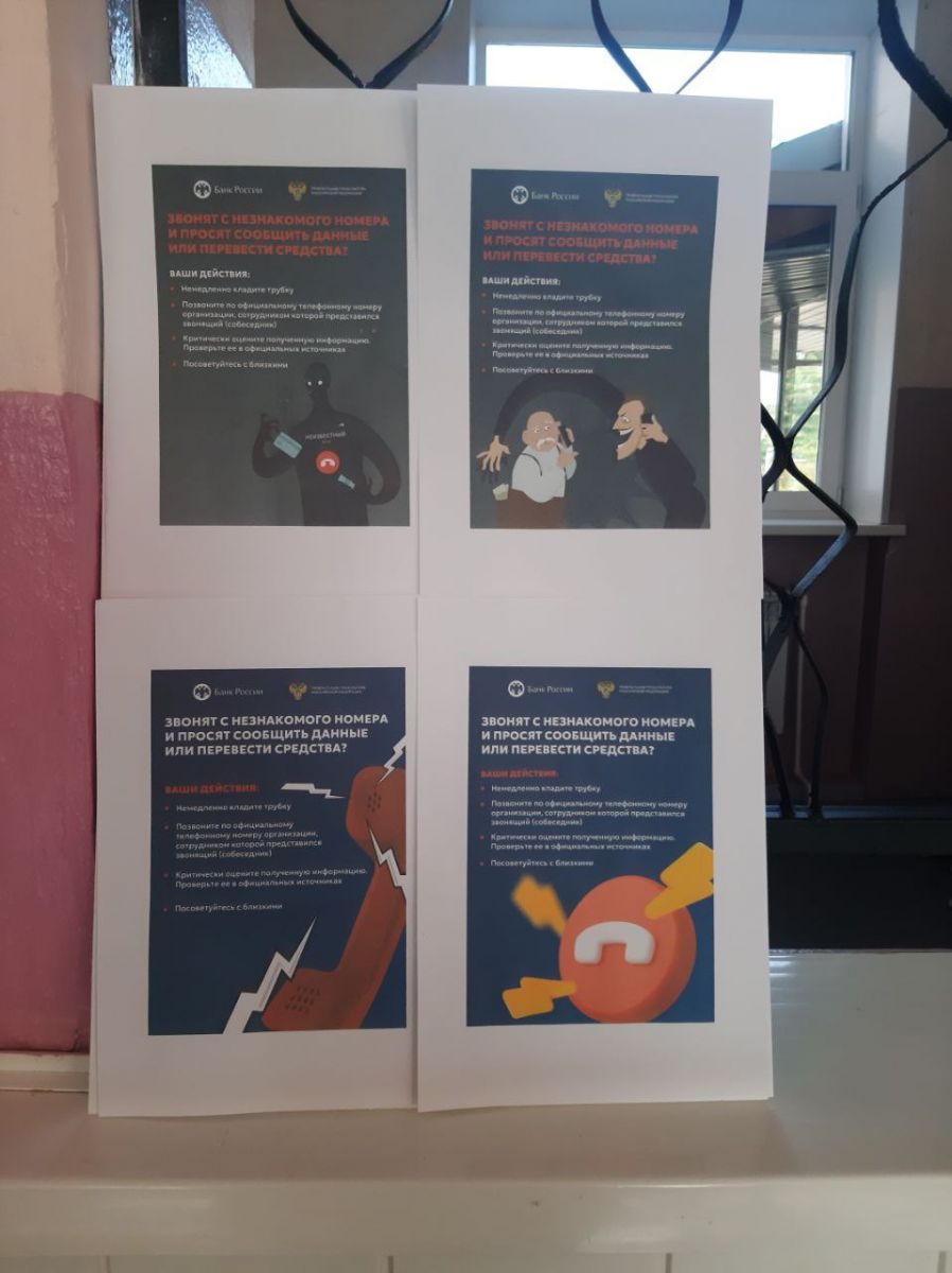 5 сентября в школе была организована информационная работа по распространению плакатов по теме безопасности граждан по противодействию новым способам методам хищений