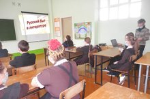 Для учеников 5-7 классов сельским библиотекарем был организован познавательный час-викторина «Русский быт в литературе – Әдәбиятта рус көнкүреше», на котором ребятаузнали историю дворянского быта на примере литературных произведений Тургенева, Гончарова, Пушкина, Толстого, Чехова, Бунина, Куприна. Библиотекарь, демонстрируя книги классиков, отметила, что авторы погружают читателя в мир повседневной жизни русского дворянства XVIII века, детально описывают не только жизнь, но и быт своих героев. Вместе с ними читатель переносится в ту далекую и прекрасную эпоху. Представить русский быт того времени помогла подготовленная красочная слайд-презентация, включающая в себя репродукции известных художников и фрагменты музыкальных произведений. Завершилось мероприятие викториной, в которой прозвучали интересные вопросы о народном костюме, народной кухне, русском гостеприимстве. С предложенными вопросами участники, проявив эрудицию и смекалку, справились успешно.