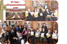 Во всероссийский день библиотек на итоговой встрече «Урок культуры» библиотекарь познакомила ребят 1-4 классов с результатами выполненных заданий в «Культурном дневнике школьника», с количеством посещений мероприятий и книговыдачей в период с сентября 2016 по май 2017 года. Было отмечено, что юные читатели с удовольствием участвовали в проводимых литературных вечерах, викторинах, познавательных часах и конкурсах. Но самыми активными оказались Кирлась Дмитрий (3 класс), Гадельшина Аделина (4 класс), Притчик Дарья (2 класс) и Ольга (4 класс), Нитченко Вадим (4 класс), Осиповы Маргарита (3 класс) и Артём (4 класс), Булгакова Кристина (1 класс), Яковлев Дмитрий (1 класс), Никонов Ярослав (3 класс). Им были вручены «Благодарственные письма» от сельского библиотекаря. В заключение участники встречи были приглашены на все летние мероприятия в сельскую библиотеку.