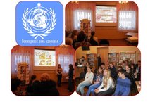 Во Всемирный день здоровья, 7 апреля, в сельской библиотеке проведен информационный час «Всем здоровья на века», куда был приглашены и ученики 5-9 классов. Вначале библиотекарь напомнила собравшимся, что без здоровья трудно сделать жизнь веселей и интересней, и подсказала, что нужно делать, чтобы жить долго и активно. Далее читатели вспоминали пословицы и поговорки о здоровом образе жизни, в викторине «Вкуснятина» выбирали правильный ответ из предложенных вариантов, а в игре «Зубы, мои зубы» участникам нужно было ответить на вопросы, которые касались профилактике кариеса и зубной боли. Ученицы 6 класса (Л.Заказчикова и Л.Латыпова) сыграли небольшую миниатюру «Режим дня», в которой показали, как важно правильно чередовать труд и отдых в течение дня. В заключение библиотекарь ещё раз напомнила о том, что здоровье зависит от нас самих, обратила внимание на книги 37, 5 раздела фонда, а так же каждому вручила на память буклеты «Всем здоровья на века» с рекомендательными списками литературы и кинофильмов. В течение всего мероприятия звучала бодрая музыка (И.Дунаевский «Спортивный марш», А.Пахмутова «Герои спорта», В.Соловьёв-Седой «Закаляйся»). На экране проецировались иллюстрации картин известных художников З.Серебряковой, А.Самохвалова, А.Дайнеки, С.Луппова.