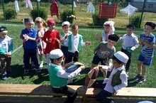 В нашем детском саду уже стало многолетней традицией проведение фольклорного праздника татарского народа «Сабантуй». Сабантуй (праздник плуга) - это веселое празднование окончания полевых и посевных работ, на котором не утихают национальные песни и пляски, шуточные конкурсы и спортивные состязания. Сегодня, 17 июня 2021 года, на спортивной площадке СОШ, прошел традиционный праздник «Сабантуй». В программу праздника были включены народная татарская игра «Продай горшок», индивидуальные выступления детей с песнями и танцами, играми. Ребята соревновались в силе, ловкости и выносливости, поиграли в игры соревновательного характера: «Бой мешками», «Конные скачки», «Бег в мешках», «Кто быстрей донесёт воду в пиалах», «Кто быстрей донесёт яйцо в ложке», «Перетяни канат». Особенно весело прошел бой мешками.