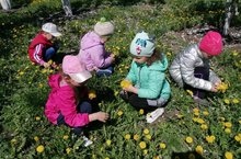 Приобщение дошкольников к природе родного края, знакомство с растительным миром проходит в основном через систему ежедневных прогулок. На территории детского сада расцвело очень много одуванчиков. Ну как за ними не понаблюдать? Воспитанники старшей разновозрастной группы с восхищением рассматривали полянку с цветами, и каждому хотелось рассказать, на что похож одуванчик, какой он. Конечно же, одуванчик похож на солнышко, он очень любит солнечные лучики, от которых и становится очень красивым и ярким. Наблюдая за одуванчиком, дети рассмотрели строение самого цветка, выделили основные части растения (стебель, листья, цветок). Педагог Рамиля Рафиковна обратила внимание детей на то, что утром в солнечный день цветки одуванчика раскрываются, а поздно вечером и перед дождём – закрываются. Ребята узнали о целебных свойствах этого растения и о том, как здорово умеют летать семена одуванчика. В процессе таких наблюдений формируются основы и начальный опыт поведения дошкольника к природе, способность замечать красоту окружающего мира, беречь и охранять природу.