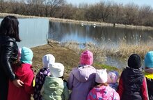 Целью сегодняшней прогулки к водоему было расширение представлений детей о перелётных, водоплавающих птицах; раскрыть особенности внешнего вида и образа жизни белых лебедей. Научить видеть величавую красоту этих птиц, побуждать детей заботиться о птицах; воспитывать познавательный интерес и бережное отношение к окружающей природе. Предварительно воспитатель старшей (разновозрастной) группы провела с детьми беседу о водоплавающих птицах, об их внешнем виде, среде обитания, особенностях питания. Рассказала, что лебедей отличает длительная продолжительность жизни, создание неразрывной пары (семьи), сообразительность и конечно же красота и грация. Отметила, что практически все виды лебедей занесены в Красную книгу. Питаются они водными растениями, моллюсками, насекомыми, с большой охотой едят зерно, ощипывают листву с ветвей ивы, наивысшей над водоёмом. Пара лебедей преданы друг другу до самой смерти, поэтому и стали символом любви, семьи и верности. Каждый год они прилетают к нам, на одно и то же место гнездовья. Они возвращаются в начале апреля, чтобы снова радовать людей своей красотой.