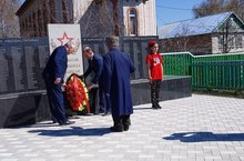 Ветеран белән бергә авылдашларыбызга багышланган һәйкәлгә венок куелды. 11.05.2022