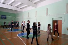 Мәктәптә 23 нче февраль көненә әзерлек кысаларында төрле спорт уеннары бара. Укучылар чираттагы волейбол уенында.