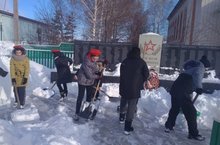 Яшьармиячеләр авылыбыз ветераннарына куелган һәйкәлне кардан чистарттылар.