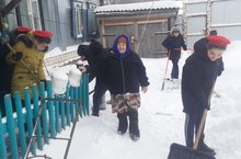 Тимуровцы и юнармейцы помогали одиноко проживающим людям: убирали снег.