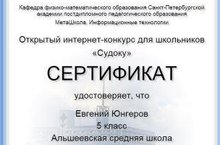 Учащиеся школы приняли участие в открытом интернет-конкурсе по математической игре “Судоку”. (Рук.Афанасьева В.Н.)
