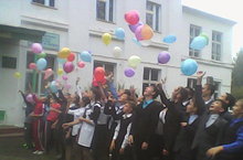 Провели массовый запуск воздушных шаров. Эта акция является эхом бесланской печали. Печали по тристо тридцати трем жертвам террористической акции.
