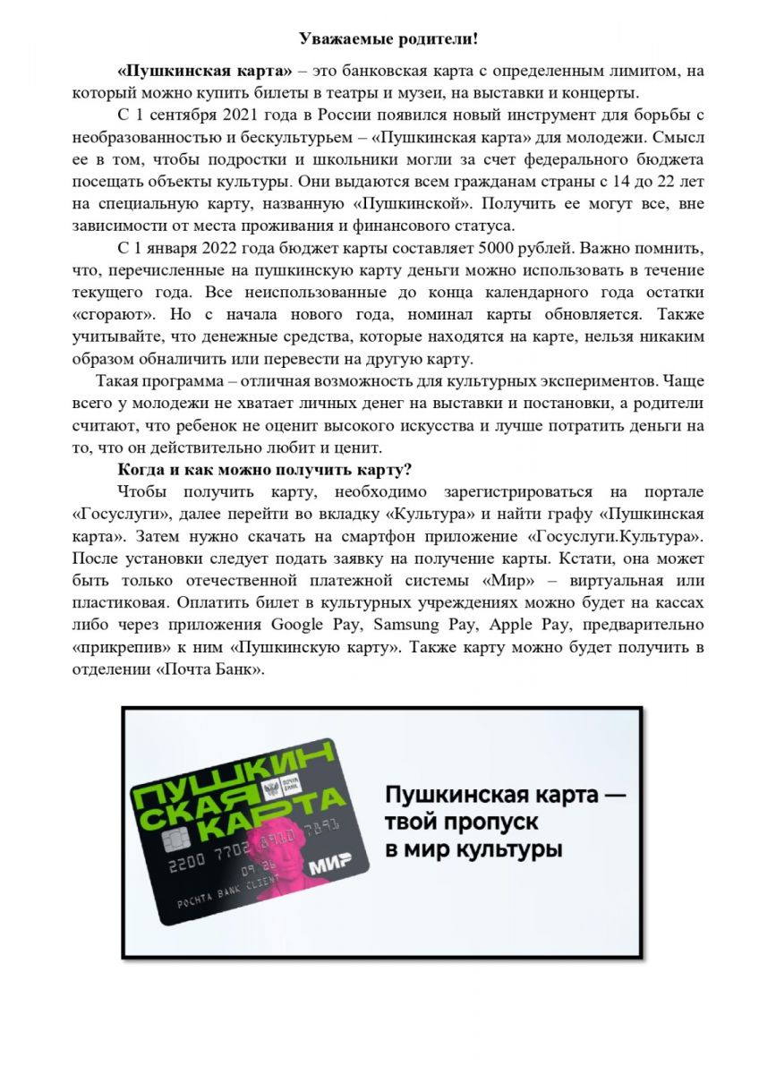 - Пушкинская карта. Информация для родителей. 29.03.2024