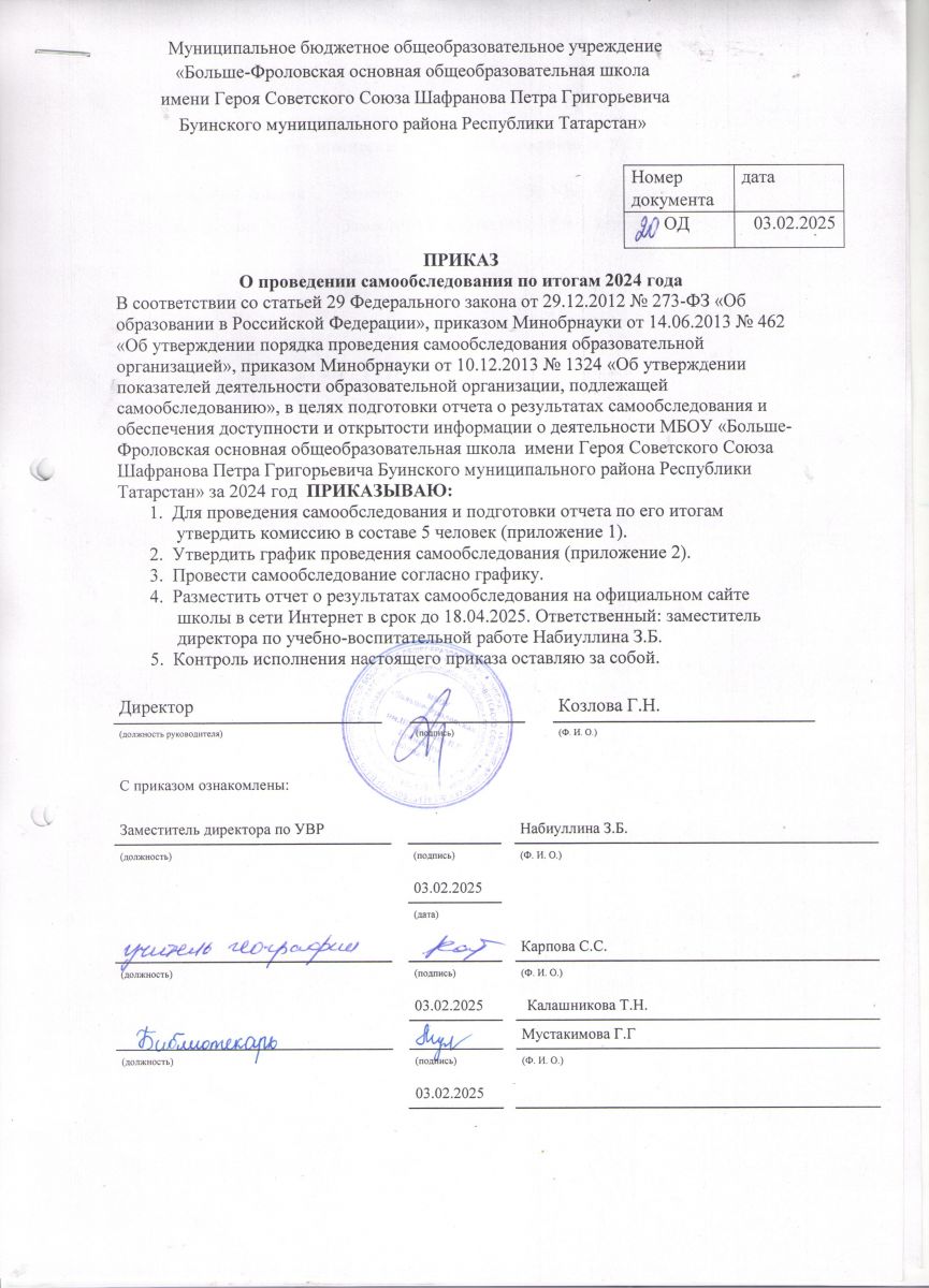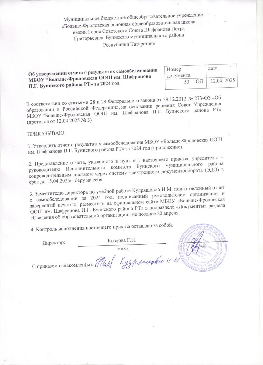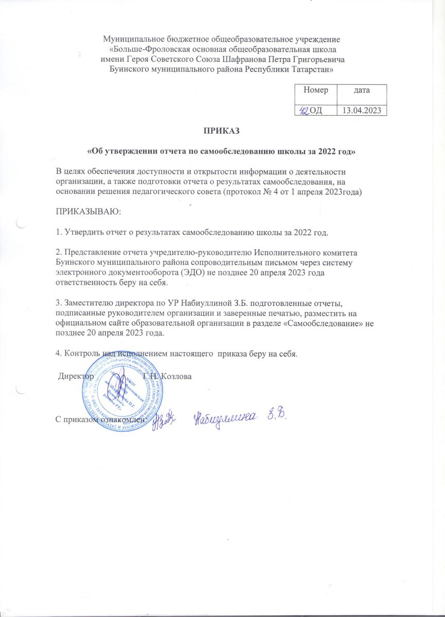 Муниципальное бюджетное общеобразовательное учреждение «Больше-Фроловская основная общеобразовательная школа имени Героя Советского Союза Шафранова Петра Григорьевича Буинского муниципального района Республики Татарстан"