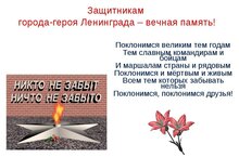 Сегодня классные часы посвящены дню снятия блокады Ленинграда. Блокада Ленинграда началась 8 сентября в 1941 году. За четыре года до Победы. Закончилась 27 января в 1944 году. Блокада длилась 872 голодных дня, каждый из которых мог стать для жителя города последним. Но они, пусть голодные, не выходили из промерзших цехов и вносили свой вклад в разгром врага.