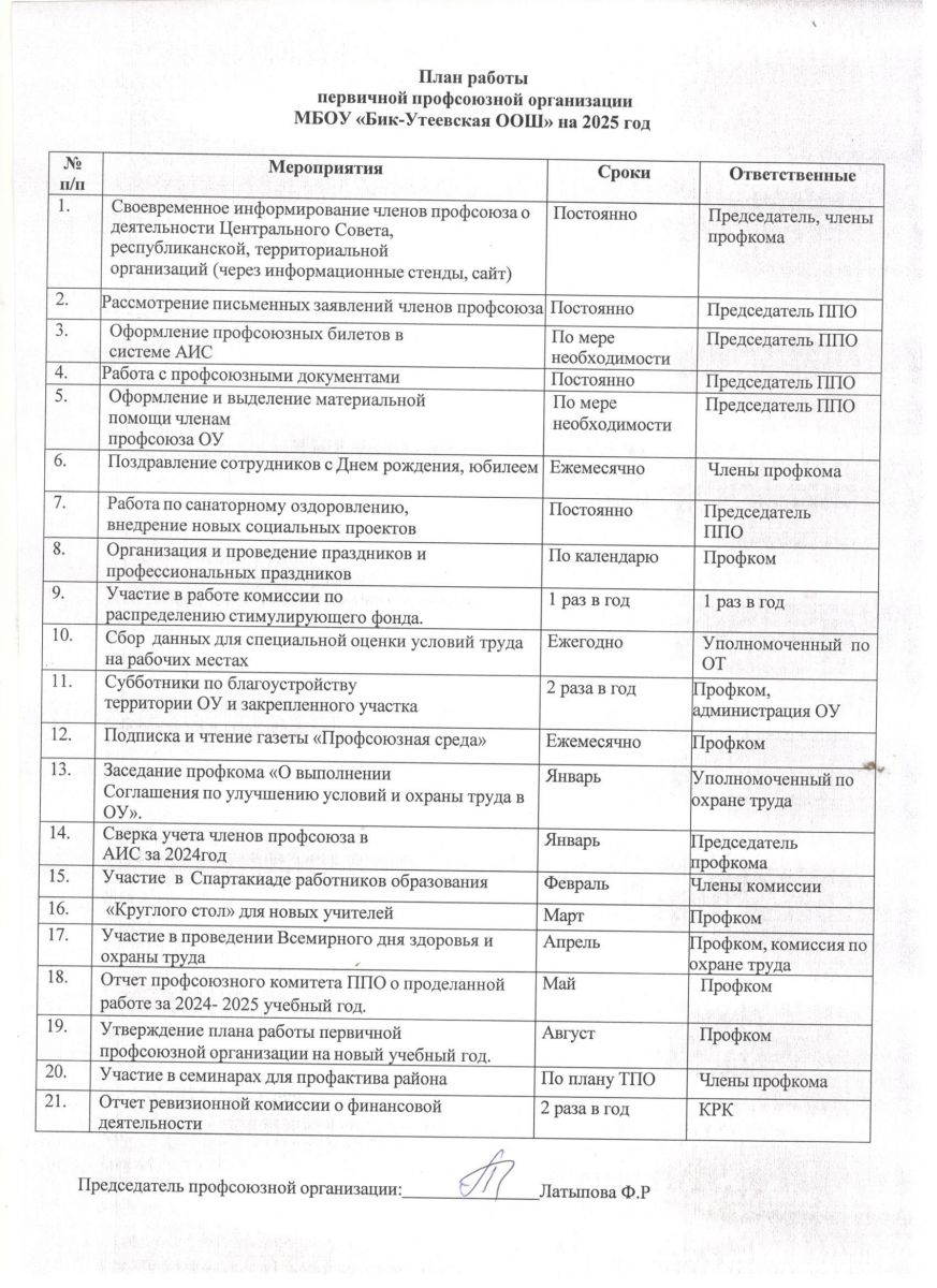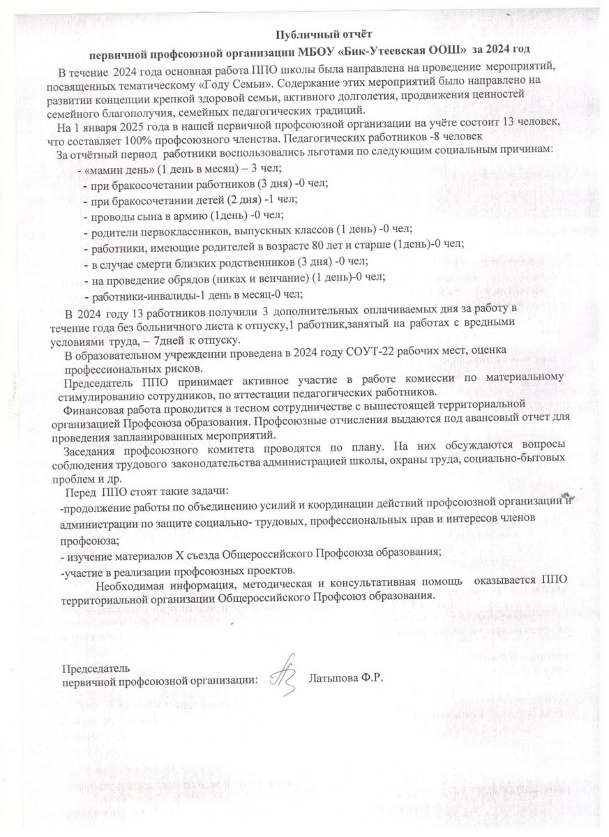 Председатель первичной профсоюзной организации - Латыпова Фирая Равилевна