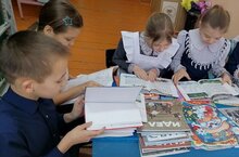 Учащиеся с интересом знакомятся с книгами представленными на выставке.