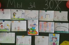 Конкурс рисунков ''Мы за здоровый образ жизни ''среди ребят из пришкольного лагеря.