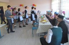 Яруллина З.З. 5 нче сыйныф укучылары белән очрашуга ветеран укытучы Хакова Солтания апаны чакырды. Укучылар аны бәйрәм белән котлап, матур теләкләрен шигырьләр аша җиткерделәр.