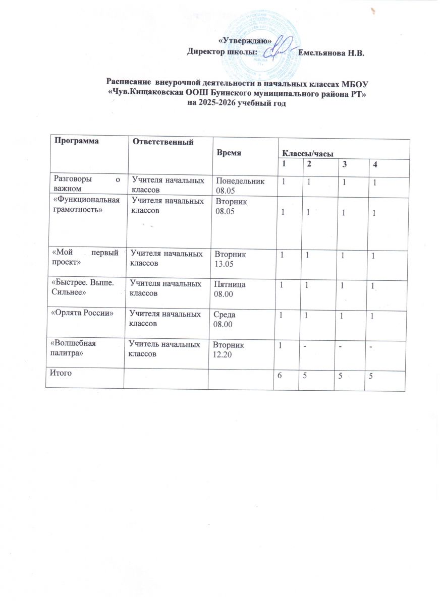 Расписание внеурочной деятельности НОО на 2025-2026 учебный год