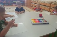 Сегодня во второй группе раннего возраста, детишки на продуктивной деятельности лепили "Яблоко".Цель: Учили отщипывать маленькие кусочки пластилина от куска и скатывать из них шарики. Закрепили знаний цвета - " Красный".