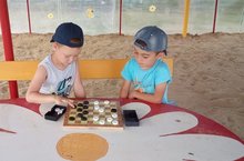Юные шашисты. 23.07.2018 Игра в шашки - любимое занятие наших малышей в любое время года. Дети показали свое мастерство, способности, умение мыслить, самостоятельно разрешать нестандартные ситуации.