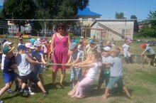 Спортивная эстафета 19.07.2018 Сегодня день мы посвятили спортивной эстафете "Веселые старты". На полосу препятствий вышли 2 команды детей старшего дошкольного возраста: "Молодцы", "Удальцы". На их пути было много трудных упражнений на ловкость, силу, меткость и скорость, но они все трудности преодолели.