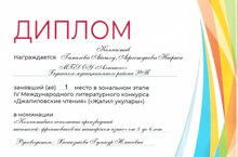 1 место в зональном этапе IV Международного литературного конкурса "Джалиловские чтения" 01.02.2022