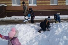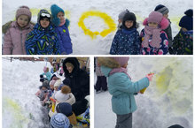 В МБДОУ "Алтынчеч" одним из зимних развлечений является рисование красками на белых зимних сугробах. 08.02.2019