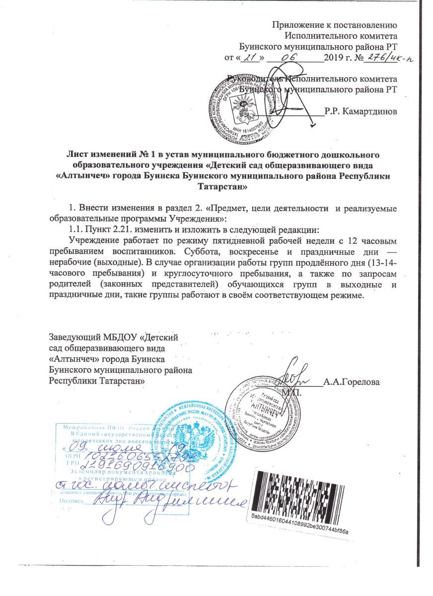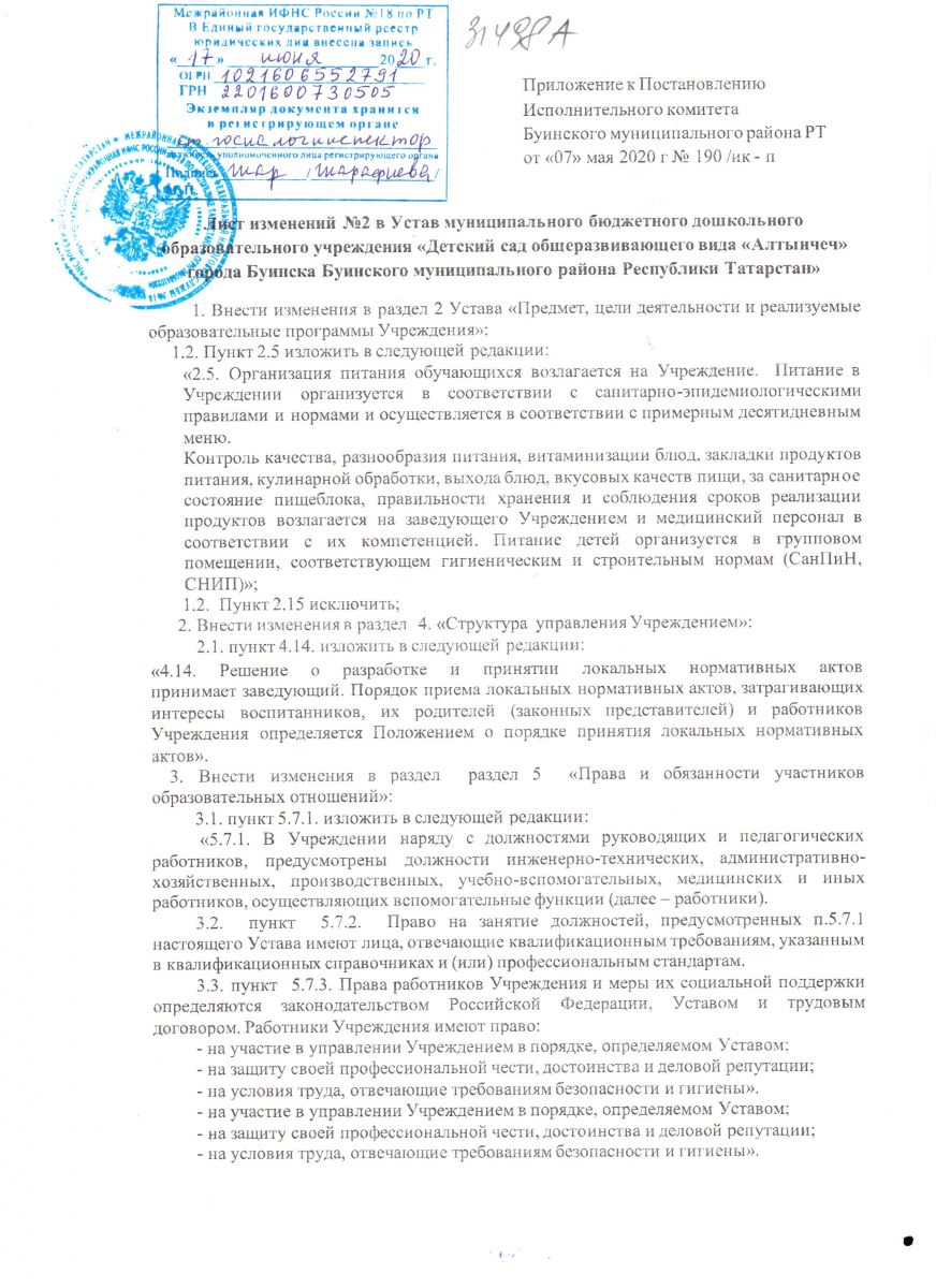 Лист изменений №2 в Устав от 17.06.2020 г.
